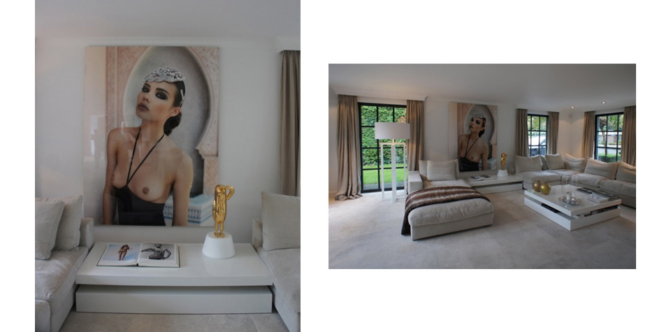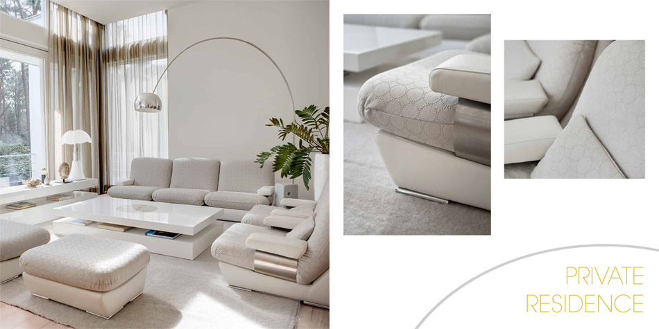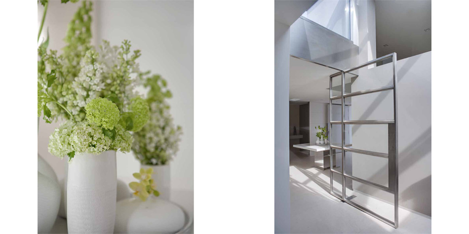 Persoonlijke verzamelingen en vondsten verzameld tijdens hun vele reizen, combineerde Olga met strakke belijning van de villa. Zij voegde glanzende oppervlakten, comfortabele, zachte stoffen en ronde vormen van haar eigen label OMooves toe. Zo ontstond er een persoonlijk interieur dat het verhaal vertelt van haar bewoners.